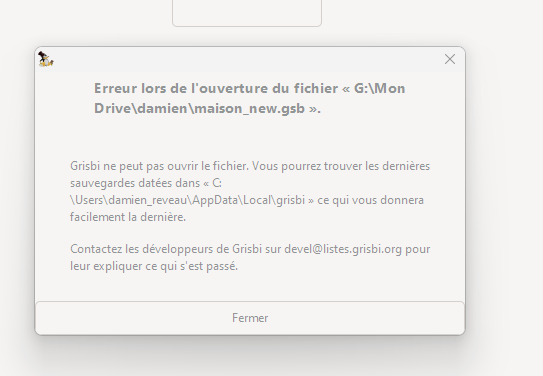 Ce matin je reçois ce message derreur à louverture de mon fichier grisbi.